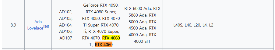 RTX 4060의 경우 Compute capability는 8.9이므로. CUDA Toolkit은 11.8 부터 사용가능하다.