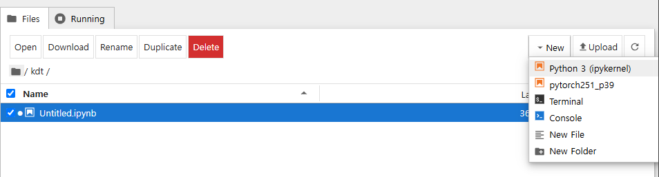가상환경 이름은 원하는 대로 설정해도 됨. 여기에서는 pytorch와 python 버전을 명시했다. (pytorch251_p39)