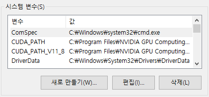 시스템 변수에 CUDA_PATH가 잘 들어갔는지 확인.