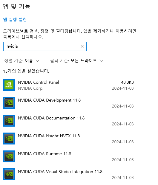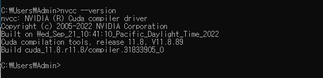 11.8 버전이 설치되어 있음을 확인할 수 있다.