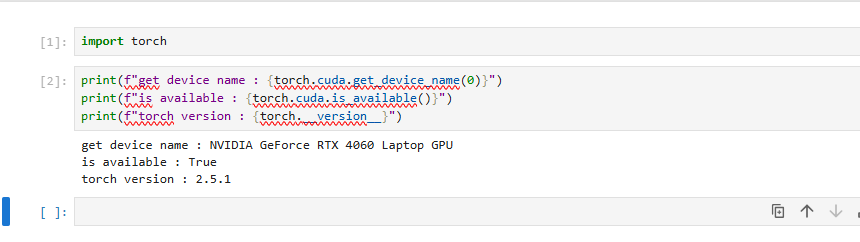 아래 코드를 실행시켜서 pytorch 설치 및 GPU 연결이 잘 되었는지 확인한다.