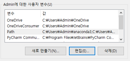 상단의 사용자 변수에서 Path 선택 후 더블클릭
