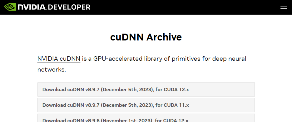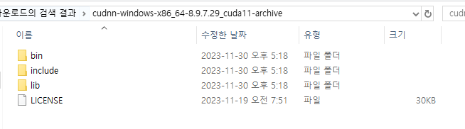 CUDA Toolkit과 호환되는 cuDNN을 다운받는다.
